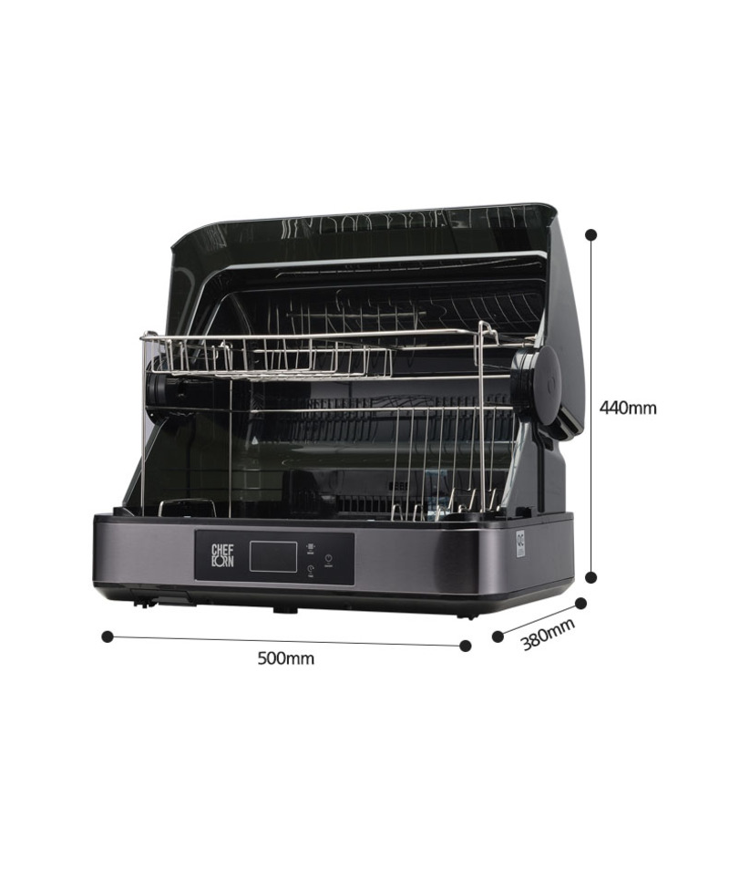 Tia UV lớn kèm không khí nóng 80 độ C luân chuyển 360 độ “khử trùng kép” giúp làm sạch và khô bát đĩa nhanh chóng.