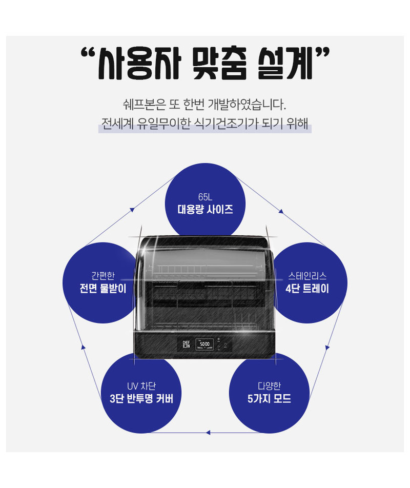 5 chế độ sấy: tự động, sấy khô , UV, thông gió và lưu trữ phù hợp cho mọi nhu cầu.