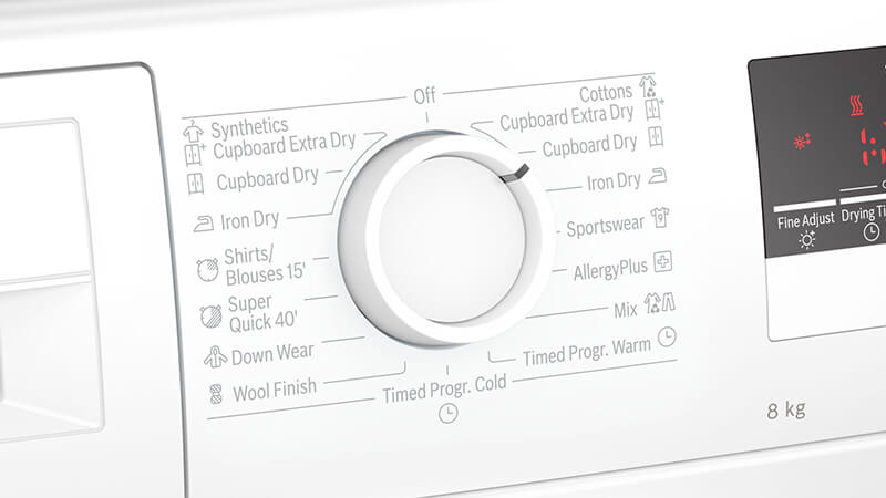 - Với tải trọng lên tới 8kg của Máy sấy Bosch WTN84201MY làm khô đồ theo một cách nhẹ nhàng bằng nhiệt độ lý tưởng để ủi, phơi hoặc cất tủ. Máy sẽ tự động cảm biến đồ trong máy rồi đưa ra nhiệt độ và độ ẩm phù hợp để bảo vệ quần áo không bị quá nhiệt và quá tải.