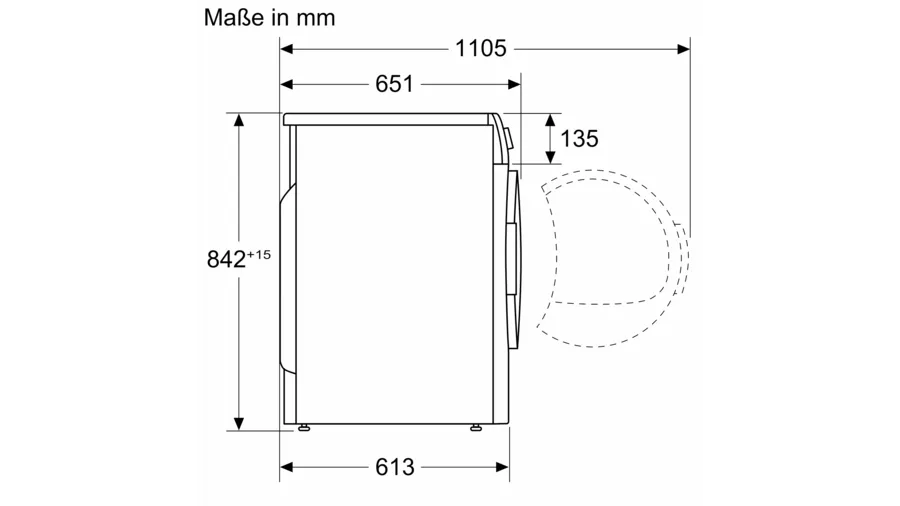 - Độ sâu khi cửa mở (90°) 1.105mm