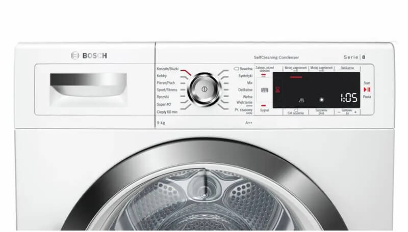 - Máy sấy quần áo Bosch WTW85562PL|Serie 8 trang bị màn hình hiển thị LED lớn với thông tin về chương trình chạy, lựa chọn nhiệt độ, cài đặt vòng / phút, thời gian còn lại và 24 giờ hẹn giờ trễ của chương trình, lựa chọn chương trình loại bỏ vết bẩn và chỉ số làm mòn quần áo một cách tốt nhất.