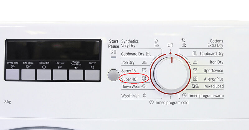 - Máy sấy quần áo Bosch WTW85562PL|Serie 8 với hương trình sấy nhanh 40 phút cho bạn sấy nhanh lượng quần áo ít hoặc quần áo có chất liệu khô nhanh chỉ với thời gian 40 phút. Điện năng được sử dụng trong chương trình ít nhất có thể với hiệu quả sấy hoàn hảo.