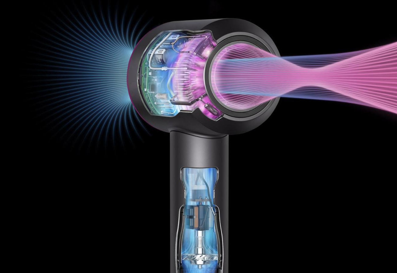 - Động cơ kỹ thuật số Dyson V9 nhỏ, mạnh mẽ quay với tốc độ lên tới 110.000 vòng/phút. Kết hợp với công nghệ Air Multiplier, nó tạo ra luồng khí có kiểm soát với áp suất cao, tốc độ cao, giúp sấy khô nhanh và tạo kiểu chính xác.