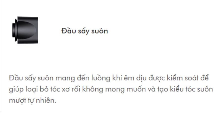 - Làm khô tóc với luồng không khí mượt mà, được kiểm soát, giúp tạo ra một mái tóc mượt mà, tự nhiên.