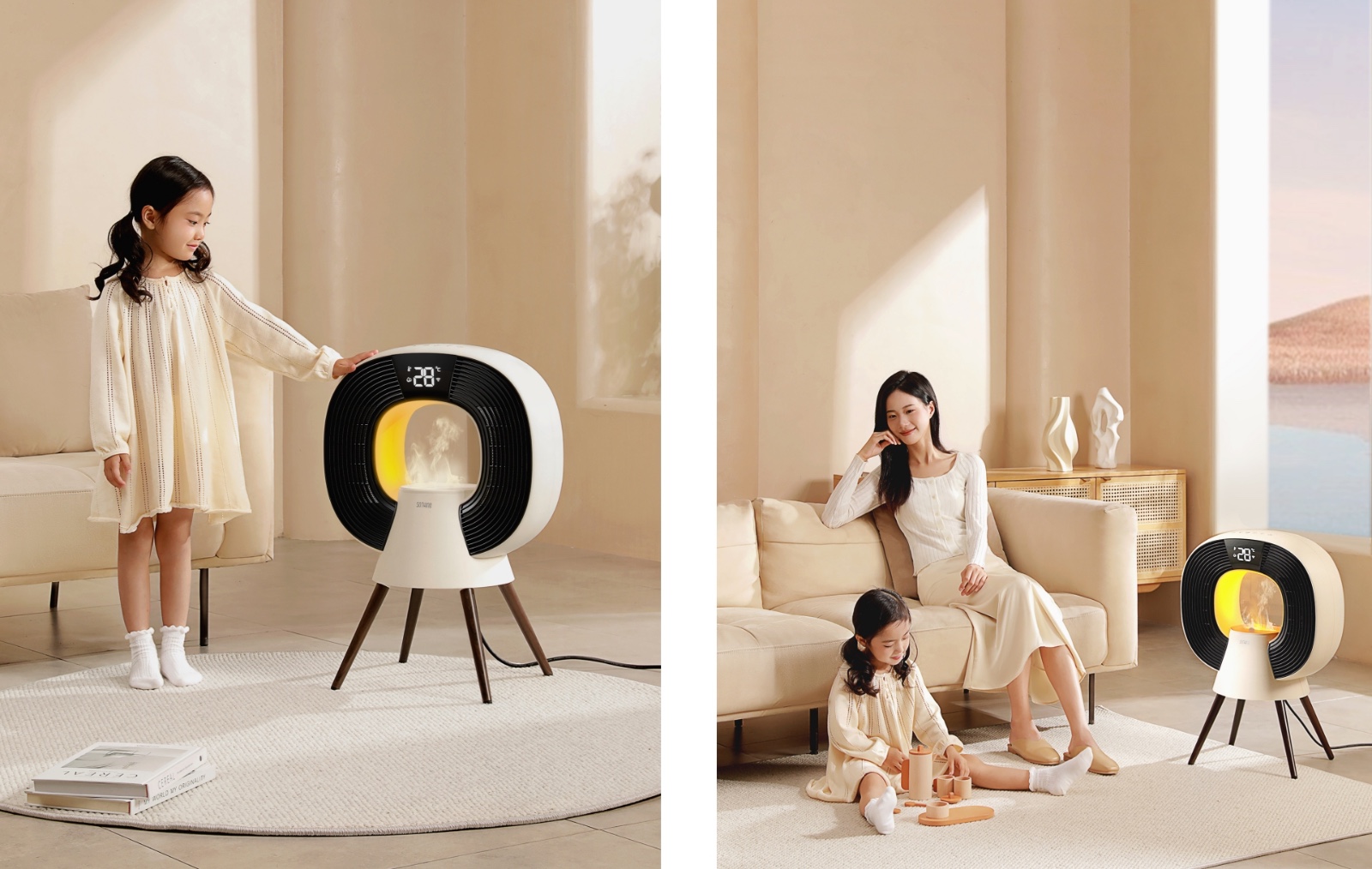 - Máy sưởi Sothing phù hợp với gia đình có trẻ nhỏ và người già. Theo đại diện nhãn hàng, máy có nhiệt độ vừa phải, luồng gió dịu nhẹ không đốt cháy không khí. Chế độ phun ẩm đồng thời tích hợp giúp độ ẩm trong phòng luôn ổn định, tránh làm khô da, khô mũi, giúp bảo vệ sức khỏe cho mọi thành viên trong gia đình.