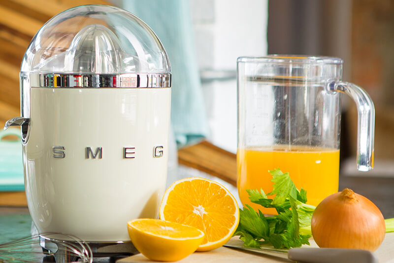 Máy ép trái cây có múi Smeg tự hào với những đường cong tuyệt đẹp, và có nhiều màu sắc khác nhau.