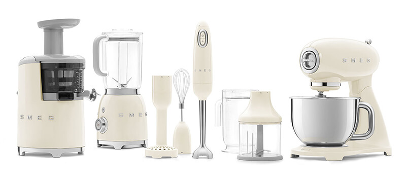 Máy xay cầm tay hỗ trợ nhà bếp Smeg chuẩn bị thức ăn. Máy có công suất động cơ 700 W. Với tính thẩm mỹ cao phong cách thiết kế những năm 50.