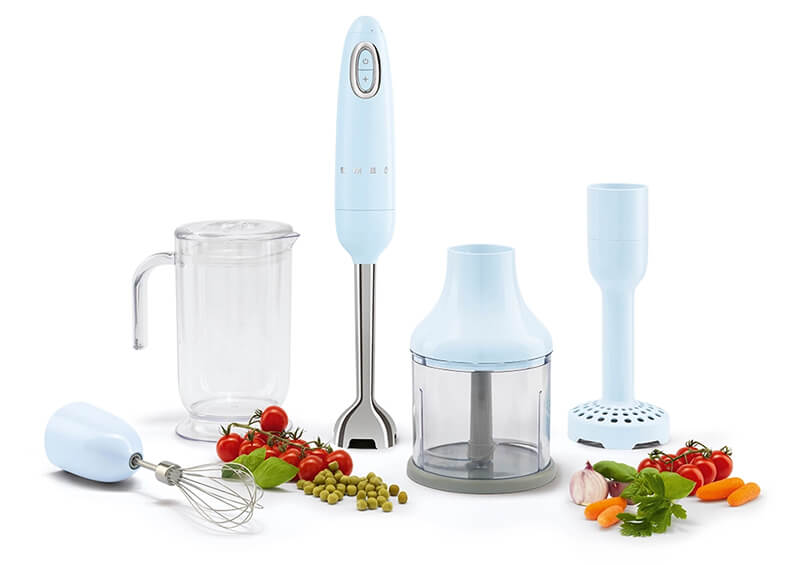 Máy xay cầm tay hỗ trợ nhà bếp Smeg chuẩn bị thức ăn. Máy có công suất động cơ 700 W. Với tính thẩm mỹ cao phong cách thiết kế những năm 50.