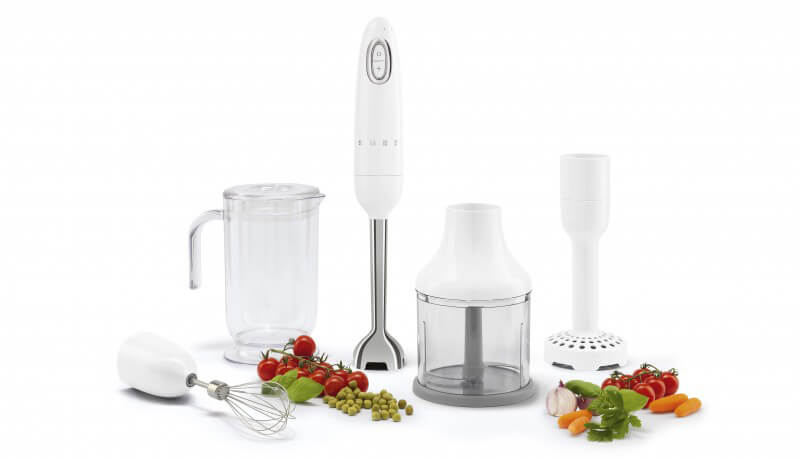 Máy xay cầm tay hỗ trợ nhà bếp Smeg chuẩn bị thức ăn. Máy có công suất động cơ 700 W. Với tính thẩm mỹ cao phong cách thiết kế những năm 50.
