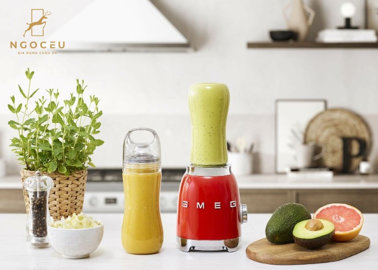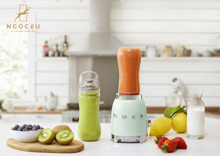 - Máy xay sinh tố mini Smeg PBF01WHEU bao gồm hai bình để đảm bảo sử dụng linh hoạt tối đa theo mọi sở thích. Chai To-Go 600ml là công cụ lý tưởng để làm sinh tố hoặc sữa lắc làm từ trái cây hoặc rau củ.