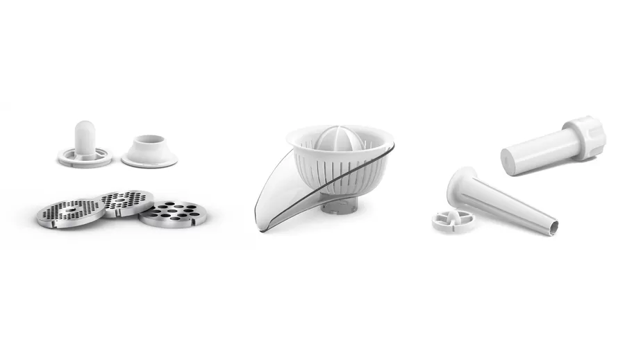 - Phụ kiện đi kèm: 1 x chất hỗ trợ, 1 x khay thúi, 1 x dụng cụ nhồi, 1 x phụ kiện xúc xích, 1 x dụng cụ ép cam ngộ nghĩnh, 1 x đĩa 2,7 mm, 1 x đĩa 4 mm, 1 x đĩa 8 mm, 1 x kebbe phụ kiện