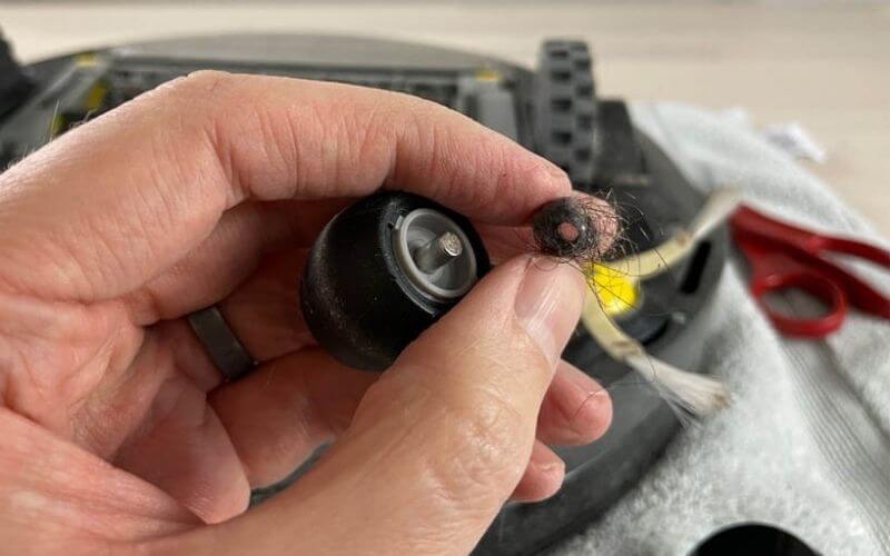 - Loại bỏ sạch tóc và lông vật nuôi: Đây là những nguyên nhân tiềm ẩn gây kẹt bánh xe và chổi quét cần được loại bỏ thường xuyên. Bạn có thể dùng lược đi kèm hoặc dao/kéo để làm sạch chúng khỏi robot.