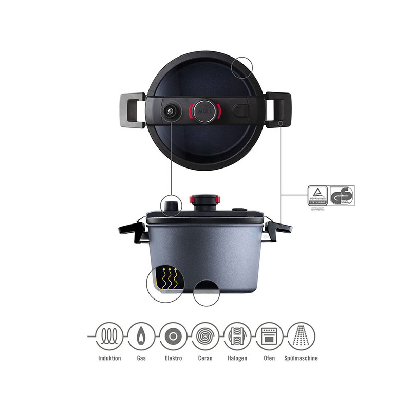 Nồi Gang Áp Suất Thấp Woll 1281-1 Dali Diamond Activelite size 28cm Thân nồi gang siêu dày, giữ nhiệt cực tốt.