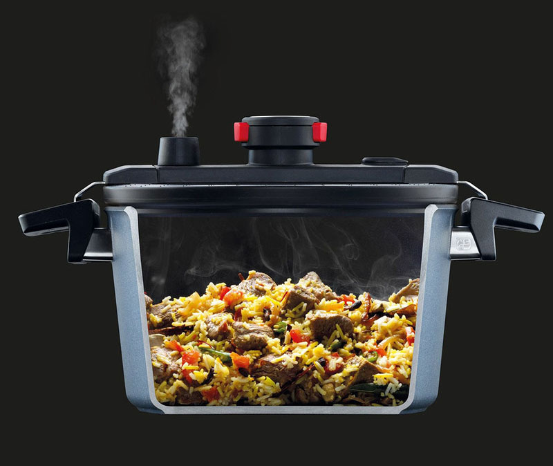 Nắp Active Lite để nấu và hấp chủ động được làm bằng kính an toàn cứng.