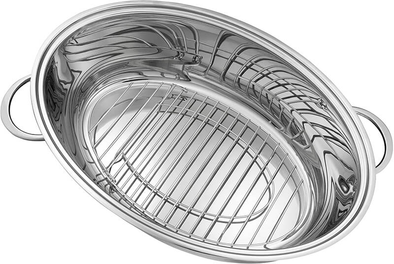 Chảo Oval hình bầu dục dòng Zwilling Plus thực sự là một chiếc chảo toàn năng. Nó cung cấp không gian rộng rãi cho gia cầm lớn như ngỗng, đủ không gian cho một đùi cừu và thích hợp cho thịt bò kho, thịt lợn hoặc thịt thú săn, goulash, bánh cuộn và các món hầm. Và nếu bạn thích ăn cá, một con cá hồi, cá hồi, cá chép hoặc cá tuyết đầy đủ có thể được nấu đặc biệt nhẹ nhàng trên vỉ nướng có thể chèn được. Với kích thước 38 cm x 25 cm, đĩa soong lớn cung cấp không gian cho mọi thứ bạn yêu thích nấu nướng cho gia đình và bạn bè.