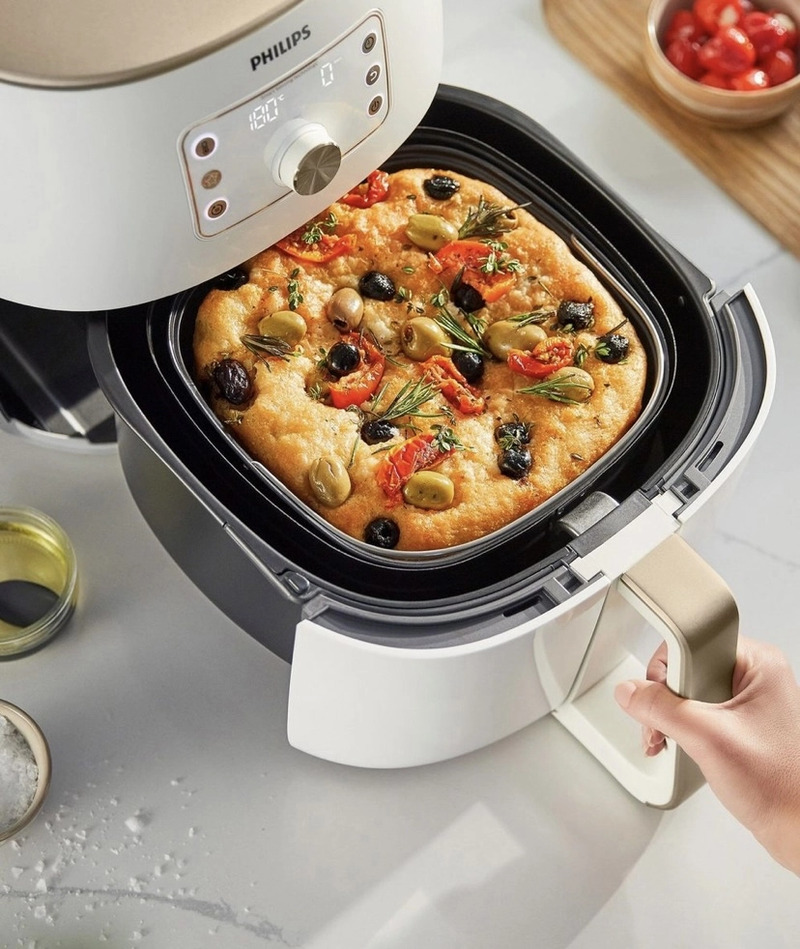 - Bạn có thể chế biến hàng trăm món ăn bằng nồi chiên Phillips HD9870/20 của mình. Chiên, nướng, làm bánh, quay và thậm chí hâm nóng các bữa ăn của bạn. Mỗi miếng ăn đều ngon như miếng cuối cùng nhờ luồng khí nóng đối lưu Philips và thiết kế đáy hình sao giúp nấu chín thức ăn đồng nhất từ mọi phía cho bữa ăn hoàn hảo.