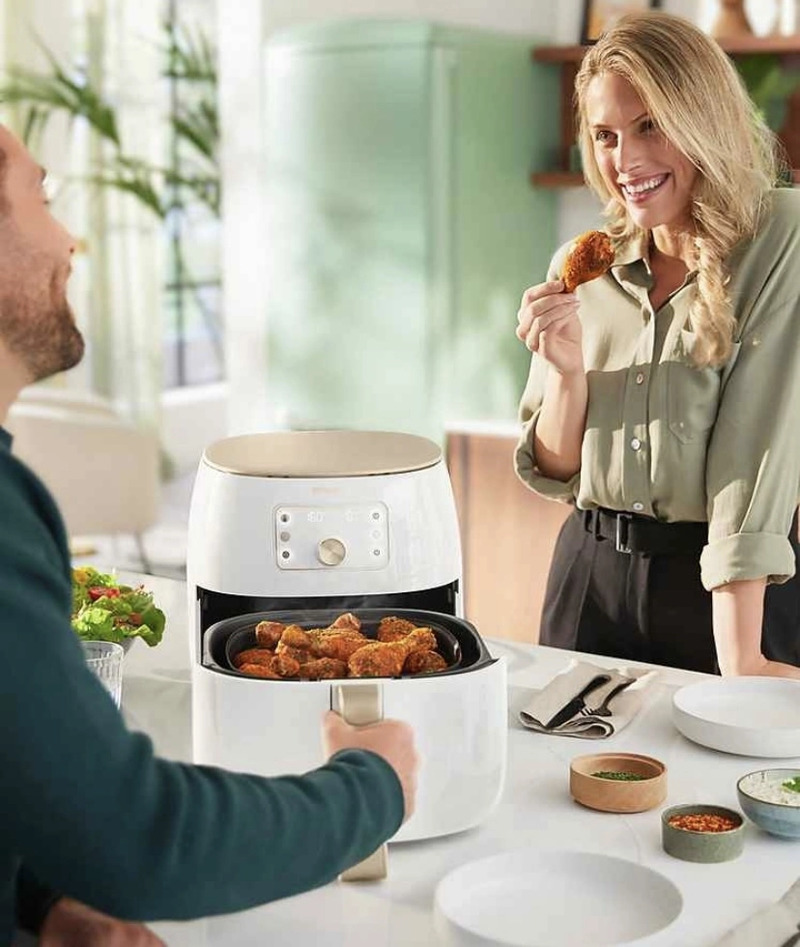 - Dòng sản phẩm thế hệ mới của Philips Airfryer sẽ thay bạn điều chỉnh nhiệt độ và thời gian phù hợp để cho ra những món ăn ngon nhất. Tận hưởng kết quả hoàn hảo trong hai bước đơn giản: Chọn nguyên liệu và nhấn nút START để nấu. Cảm biến thông minh tự động điều chỉnh thời gian và nhiệt độ dựa trên nguyên liệu và khối lượng để có kết quả hoàn hảo nhất.