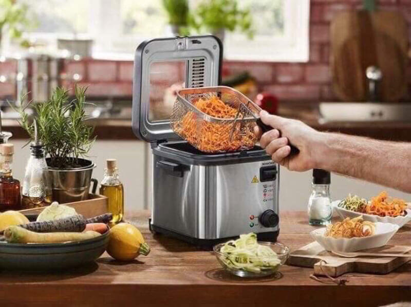 – Giỏ chiên bằng thép không gỉ, an toàn với máy rửa chén.
