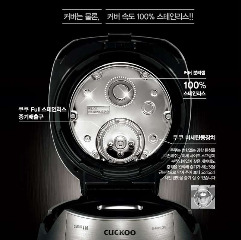 – Cuckoo-DHXB0610FS/1L sử dụng van áp suất Double Soft Steam Cap giúp cho áp suất trong nồi khi nấu luôn luôn ổn định.