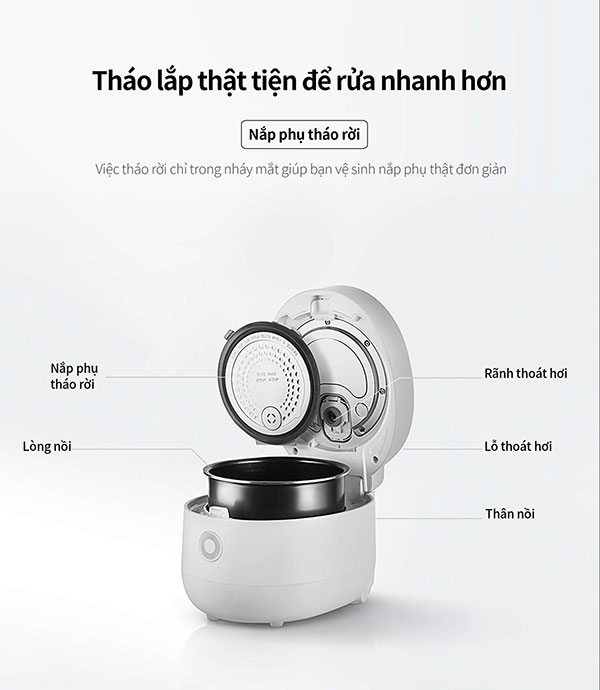 – Điều khiển cảm ứng: Thiết kế cảm ứng, thông minh giúp người dùng thao tác thuận tiện hơn. Cài đặt sẵn các chế độ nấu rất tiện dụng giúp người dùng tiết kiệm tối đa thời gian nấu cơm cho gia đình.