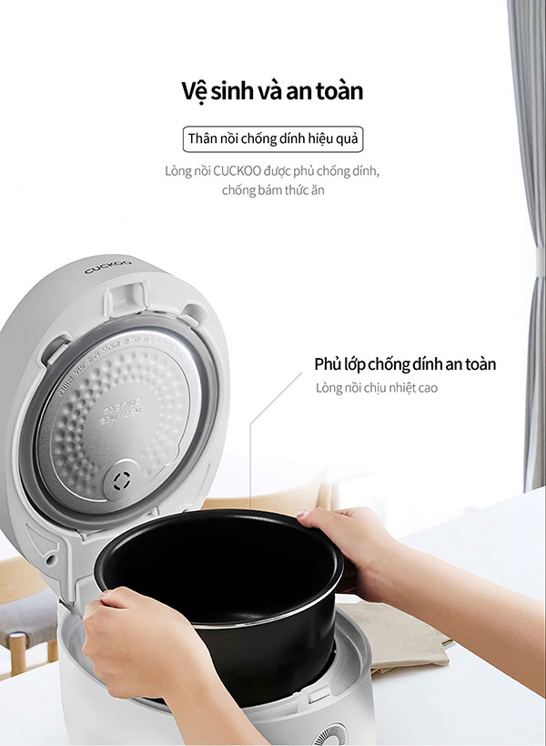 – Lòng nồi chống dính: Lòng nồi được làm từ hợp kim nhôm, được tráng lớp men chống dính cao cấp siêu bền, dễ dàng chùi rửa và đảm bảo an toàn cho sức khỏe người dùng.