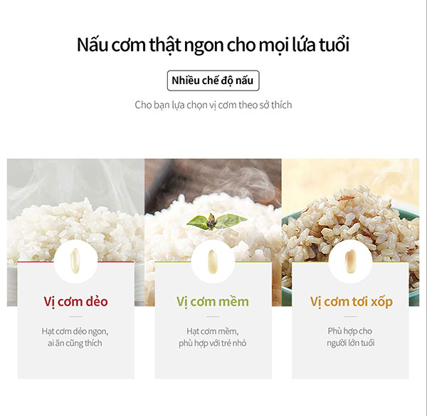 – Nấu cơm gạo trắng ba chế đồ mềm – dẻo – khô