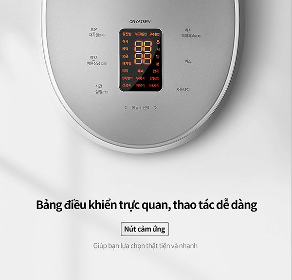 – Mặc dù thuộc dòng nồi điện tử, nhưng Cuckoo CR-0675FW vẫn được trang bị những chức năng nấu vô cùng hiệu đại.