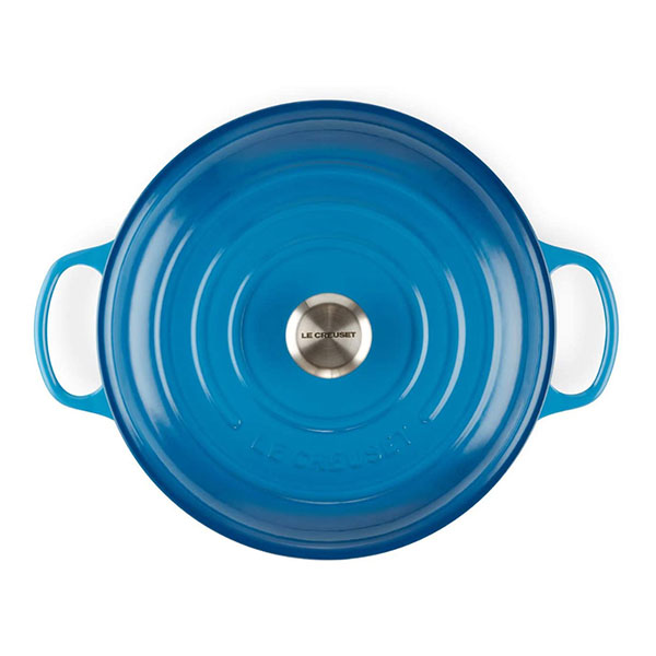 Bộ Braiser gang tráng men đặc trưng của Le Creuset. Nồi nấu bằng gang tráng men được thiết kế độc đáo cho hiệu suất tối đa, biến những miếng thịt dai và rau củ thịnh soạn thành những món ăn mềm mại, đầy hương vị. Đầu tiên, thực phẩm được nấu chín trên nhiệt độ cao, sau đó được hoàn thành từ từ trong một chất lỏng có hương vị. Phần đế rộng của braiser cho phép các thành phần được đặt trong một lớp duy nhất để làm héo thích hợp, khi chất lỏng được thêm vào, nắp vòm liên tục luân chuyển hơi nước để giữ ẩm và giữ hương vị.
