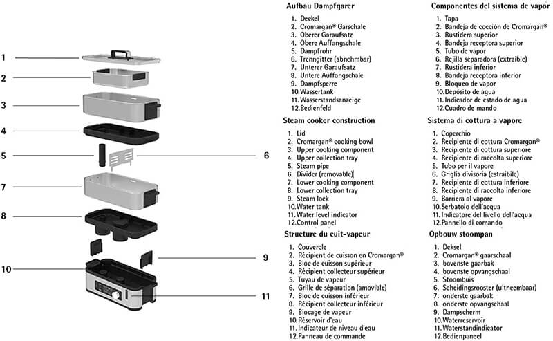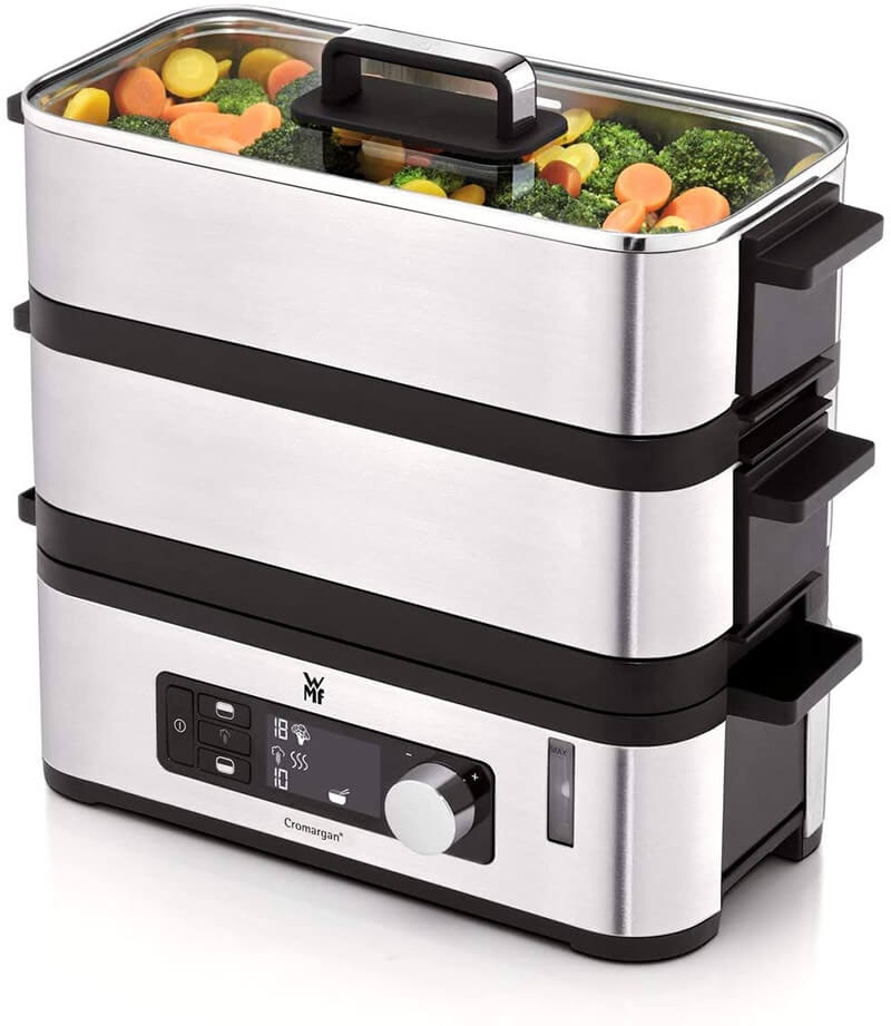 – Dễ dàng Hấp: hai tầng nấu riêng biệt, điều chỉnh riêng biệt (dung tích mỗi tầng là 2,15l), hoàn thành đồng thời, hoạt động trực quan và các chương trình nấu được đặt trước. Để hâm nóng cần 40 phút. Chất liệu cromargan đa chức năng để chuẩn bị cơm, mì ống, súp và nhiều loại hơn nữa.