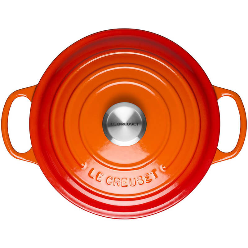 Bộ Braiser gang tráng men đặc trưng của Le Creuset. Nồi nấu bằng gang tráng men được thiết kế độc đáo cho hiệu suất tối đa, biến những miếng thịt dai và rau củ thịnh soạn thành những món ăn mềm mại, đầy hương vị. Đầu tiên, thực phẩm được nấu chín trên nhiệt độ cao, sau đó được hoàn thành từ từ trong một chất lỏng có hương vị. Phần đế rộng của braiser cho phép các thành phần được đặt trong một lớp duy nhất để làm héo thích hợp, khi chất lỏng được thêm vào, nắp vòm liên tục luân chuyển hơi nước để giữ ẩm và giữ hương vị.