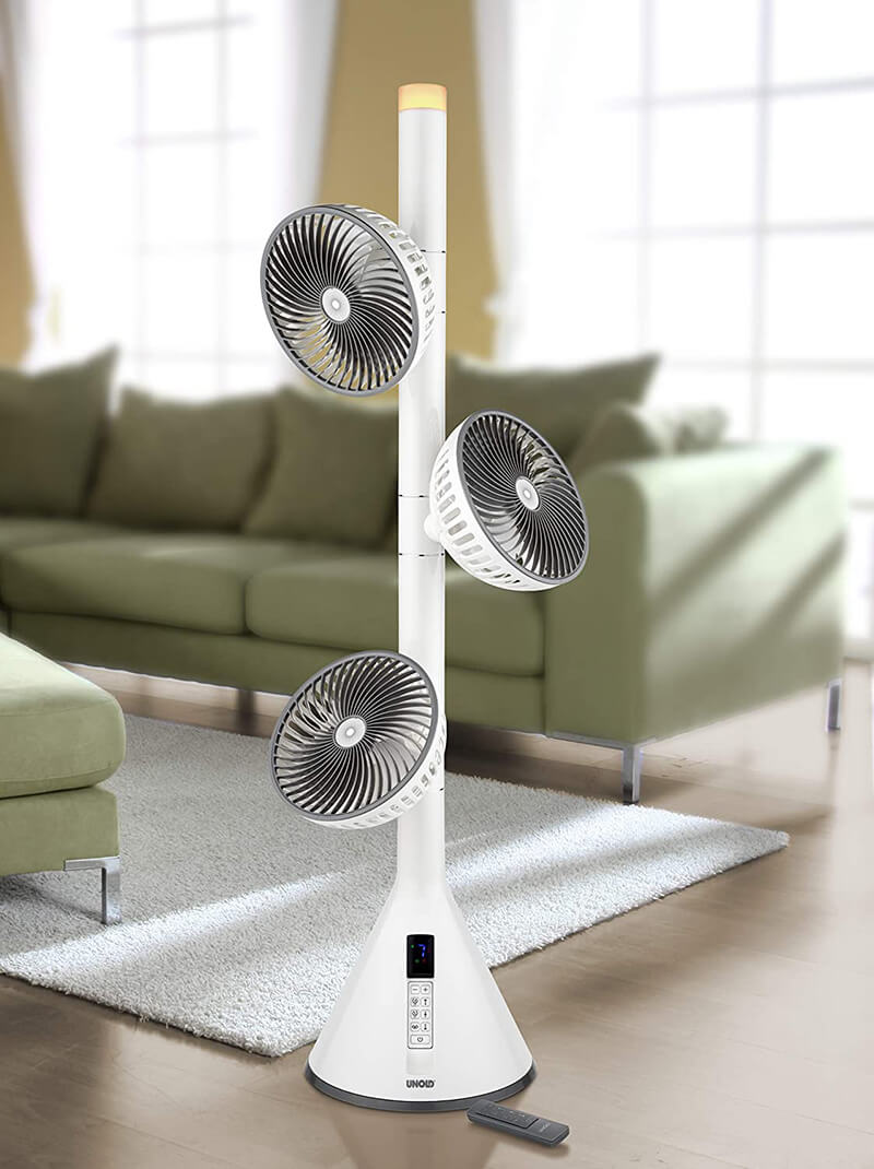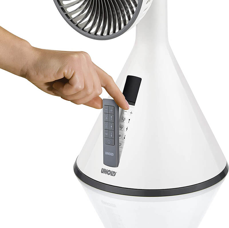 - Ba quạt của thiết bị nhỏ gọn có màu trắng / xám vượt thời gian có thể được bật và tắt riêng lẻ. Linh hoạt theo nhu cầu và nhiệt độ phòng! Và với khả năng kiểm soát tốc độ 7 giai đoạn, chúng mang đến một làn gió sảng khoái giữa mềm và mạnh. Chức năng hẹn giờ cũng có thể được chọn bằng cách sử dụng điều khiển từ xa thực tế: 1 đến 6 giờ có thể được lập trình trước.