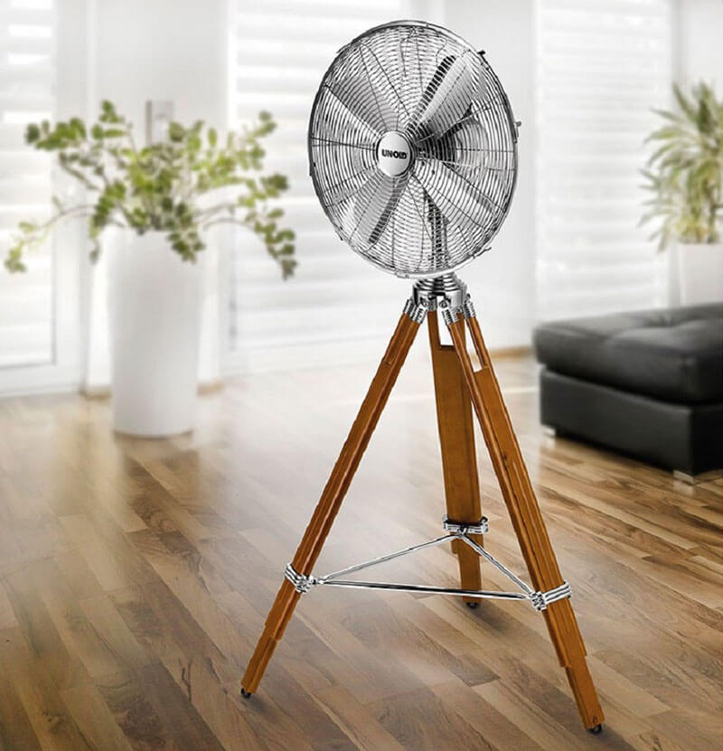 Quạt cây ba chân gỗ Unold được thiết kế dành cho những người yêu thích phong cách hoài cổ và cao quý. Chân quạt bằng gỗ phù hợp hoàn hảo với sàn nhà gỗ, lát gạc đá hoa hay sàn dán laminat. Quạt có 3 tốc độ gió, góc nghiêng và dao động gió có thể được điều chỉnh phù hợp với nhu cầu từng cá nhân.