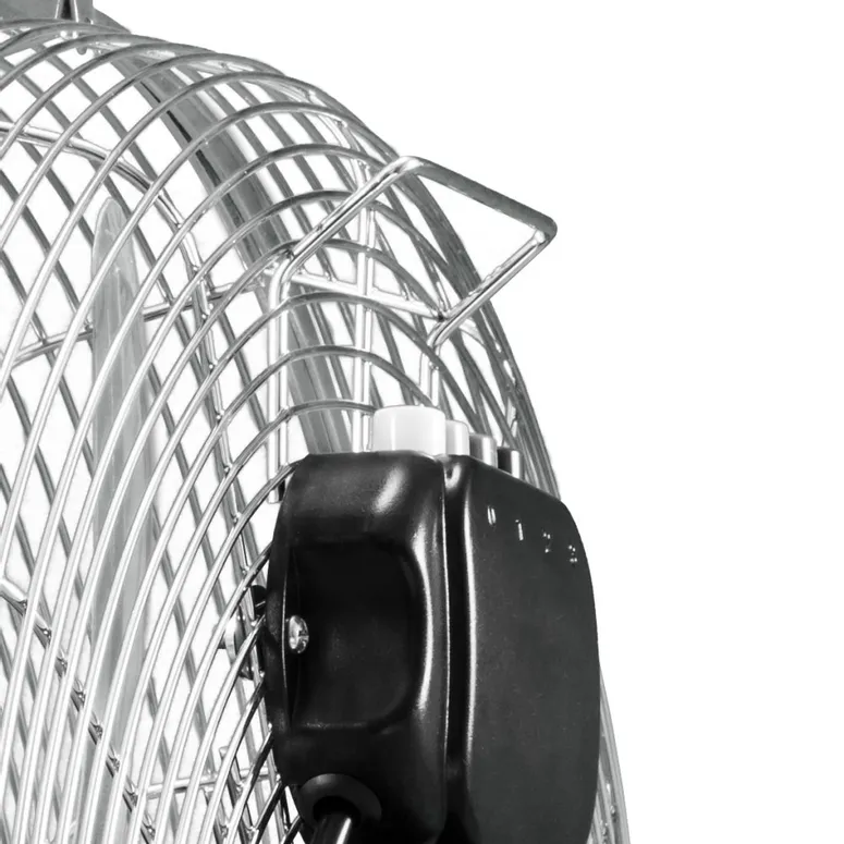 - Với đường kính cánh quạt là 18 inch (gần 45 cm), quạt có ba mức tốc độ, có thể lập bản đồ cho hầu hết mọi tình huống sử dụng: từ gió nhẹ đến gió mạnh đến gần như bão, luồng không khí mong muốn được đặt trên bộ phận điều khiển ở mặt sau của giỏ cánh quạt kim loại mạ crôm. Ngoài ra, giỏ rôto có thể nghiêng liên tục lên đến 110° quanh trục nằm ngang của nó, để luồng không khí làm mát được hướng chính xác đến nơi mong muốn.