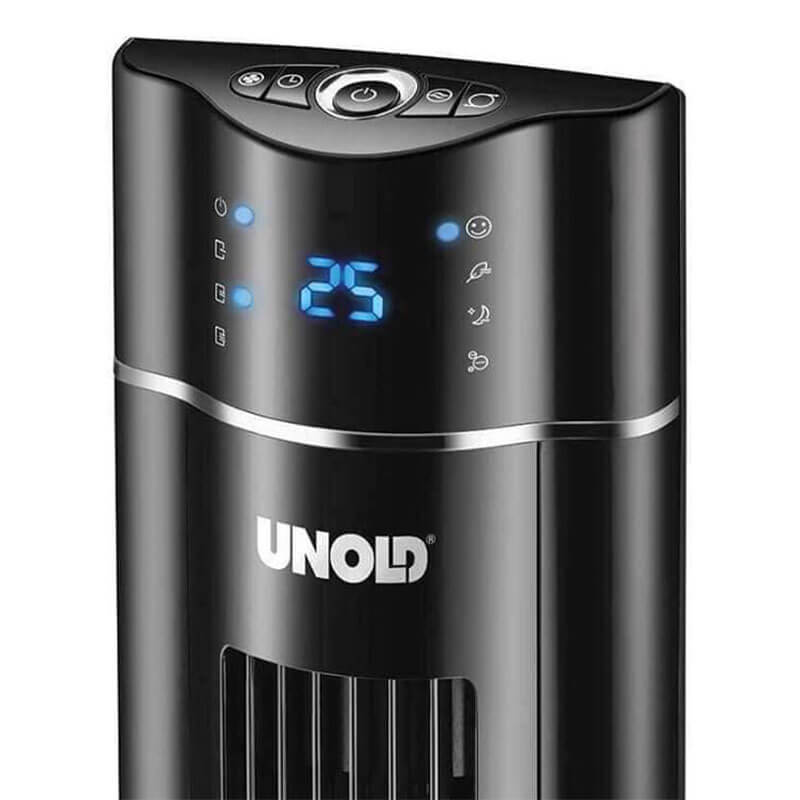 Quạt tháp Skyline không chỉ đảm bảo khí hậu trong phòng dễ chịu với ba mức tốc độ và ba chế độ thông gió – ngủ / bình thường / tự nhiên. Có thể thêm hương thơm vào phòng thông qua hộp hương thơm và dao động có thể chuyển đổi đảm bảo phân phối không khí tốt hơn. Có thể hoạt động bằng điều khiển từ xa, chức năng hẹn giờ (1 đến 8 giờ) cũng có thể được kích hoạt mọi thứ đều dễ đọc trên màn hình LED lớn có hiển thị nhiệt độ. Di động nhờ tay cầm thiết thực trong nhà và an toàn nhờ chân đế ổn định.
