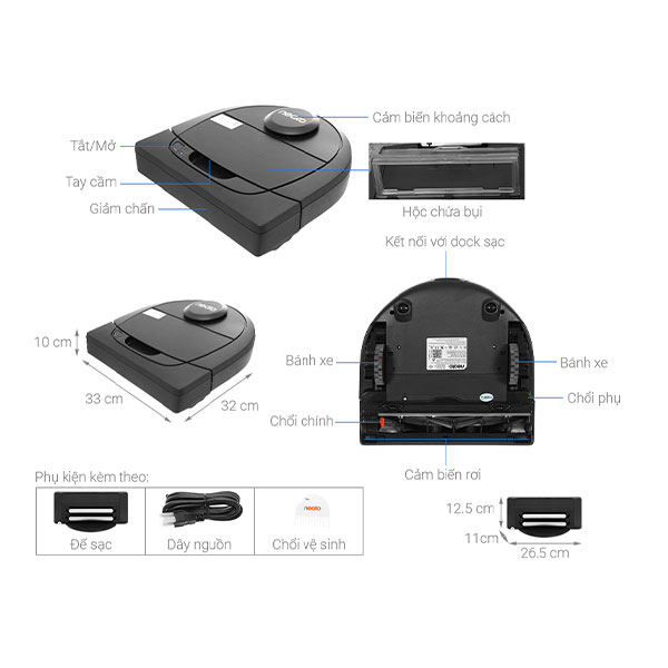 – Một số phụ kiện có thể thay đổi mà không báo trước, phụ thuộc theo từng thời điểm và chương trình khuyến mại của Neato Robotics USA.
