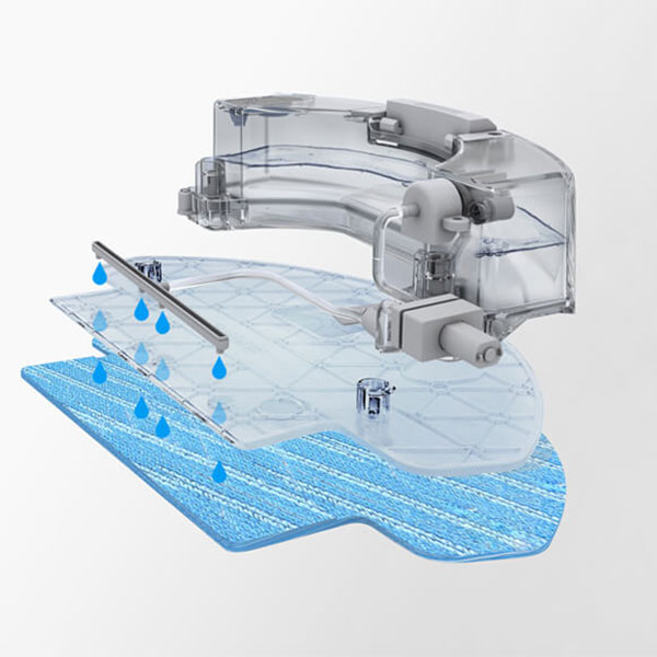 - Robot hút bụi có chức năng lau nhà, có thiết kế ngăn đựng nước dung tích 300ml, khi sử dụng máy hút bụi sẽ bơm nước để cung cấp vừa đủ độ ẩm cho khăn lau để lau nhà hiệu quả.