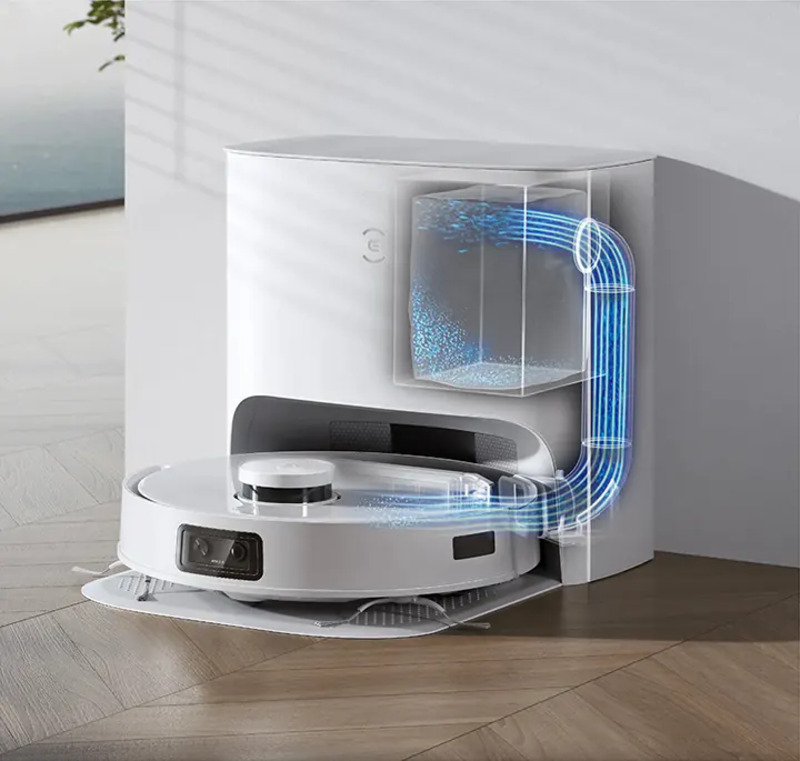 DEEBOT của bạn tự động xả sạch thùng rác sau khi làm sạch. Nó cũng đi kèm với một túi bụi không gây dị ứng có thể tự động niêm phong, đảm bảo không có hạt bụi nào thoát ra ngoài không khí. (Đế sạc xả rác được bán rời như phụ kiện độc lập – không có sẵn theo máy)