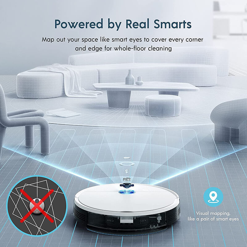 Yeedi sử dụng công nghệ điều hướng thông minh bằng camera – SmartNavi 2.0, tối ưu hoá kích thước, giảm chiều cao xuống còn 7,8cm giúp robot dễ dàng tiếp cận các khu vực gầm thấp. lưu nhớ bản đồ vệ sinh thông minh