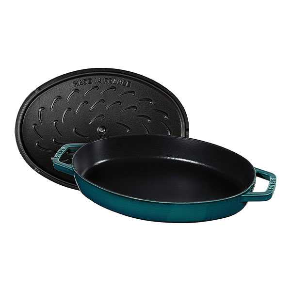 Chảo gang Staub hình Oval có lắp 32cm - Màu Xanh Tím Than