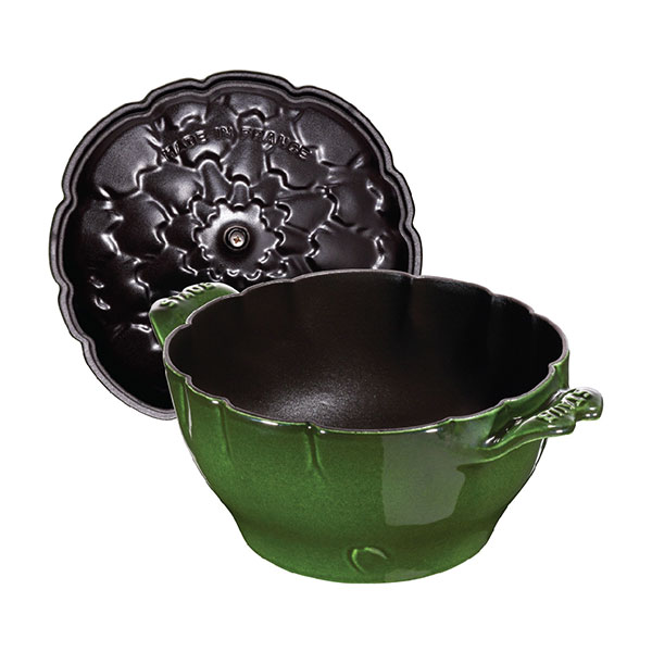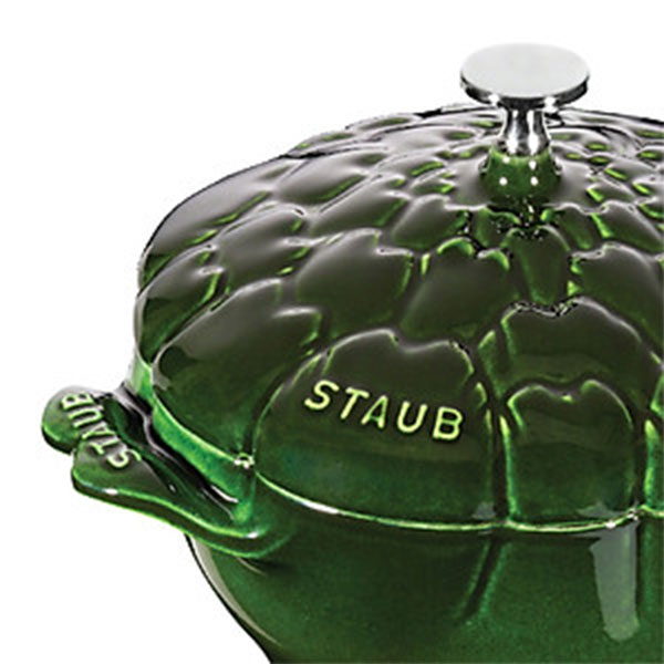 – Nồi gang của Staub nổi bật với thiết kế hình hình Atiso màu xanh giúp cho sản phẩm vô cùng bắt mắt. Để hạn chế tình trạng trầy xước trong quá trình sử dụng sản phẩm nồi gang được phủ một lớp men phù hợp với các món ninh, hầm, nướng