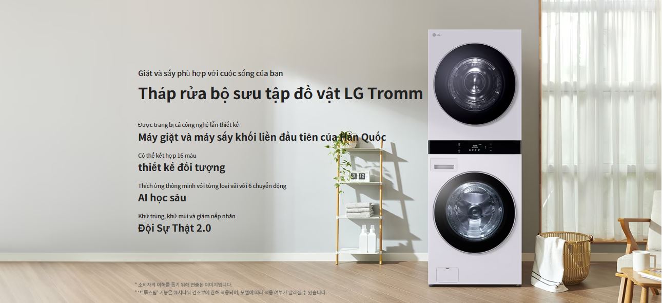 Giặt và sấy phù hợp với cuộc sống của bạn Tháp rửa bộ sưu tập đồ vật LG Tromm được trang bị cả công nghệ lẫn thiết kế. Máy giặt và máy sấy khối liền đầu tiên của Hàn Quốc