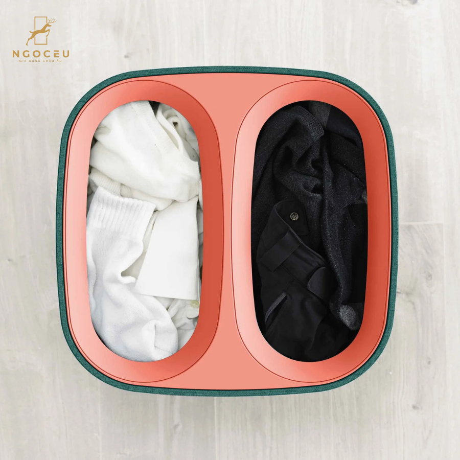 - Dung tích rộng rãi: Sản phẩm được thiết kế với 2 ngăn lớn có tổng dung tích là 60L. Với 30L mỗi ngăn, dụng cụ tiện ích này có thể thoải mái lưu trữ quần áo của cả gia đình bạn trong nhiều ngày để giặt trong 1 lần, tiết kiệm điện năng và công sức. Căn nhà bạn sẽ trở nên gọn gàng và ngăn nắp hơn khi mà không có quần áo vứt bừa bãi lung tung