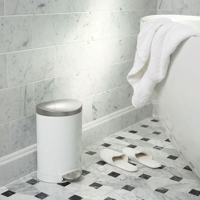 Thùng rác hãng SimpleHuman dung tích 6 lít thích hợp cho nhà tắm. Thiết kế hình oval nhìn gọn và đẹp mềm mại, với chất liệu thép không gỉ CHỐNG VÂN TAY, thùng rác có 1 lớp vỏ luôn sáng bóng. Nắp và bàn đạp đều là chất liệu thép cao cấp nên toàn bộ chiếc thùng rác nhìn sáng cả góc phòng tắm. Các mẹ xem video là thấy được những ưu điềm của nó, đúng là SimpleHuman.