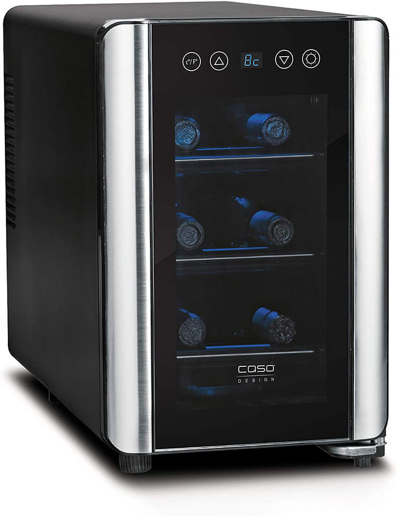 Tủ làm lạnh và bảo quản rượu vang Caso WineCase 6. Chất lượng cao, điều chỉnh nhiệt độ bằng cảm ứng mà không cần mở cửa tủ.