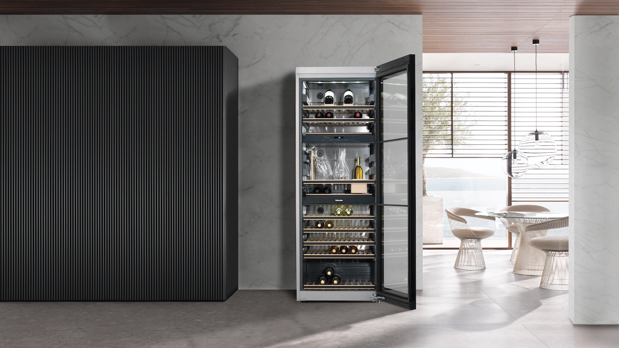 - Với bộ dụng cụ chuẩn bị rượu SommelierSet độc đáo của Miele, những người bạn của bạn hay khách đến chơi nhà sẽ bị gây ấn tượng mạnh khi họ được phục vụ những ly rượu vang hảo hạng theo cách chuyên nghiệp nhất. Tất cả các thiết bị bạn cần sẽ luôn sẵn sàng để bạn trổ tài gạn rượu như những chuyên gia đích thực. Thêm vào đó, SommelierSet cho phép bạn thưởng thức rượu sâm panh và vang trắng từ những chiếc ly được ướp lạnh, và bảo quản hoàn hảo từ những chai vang đã mở.