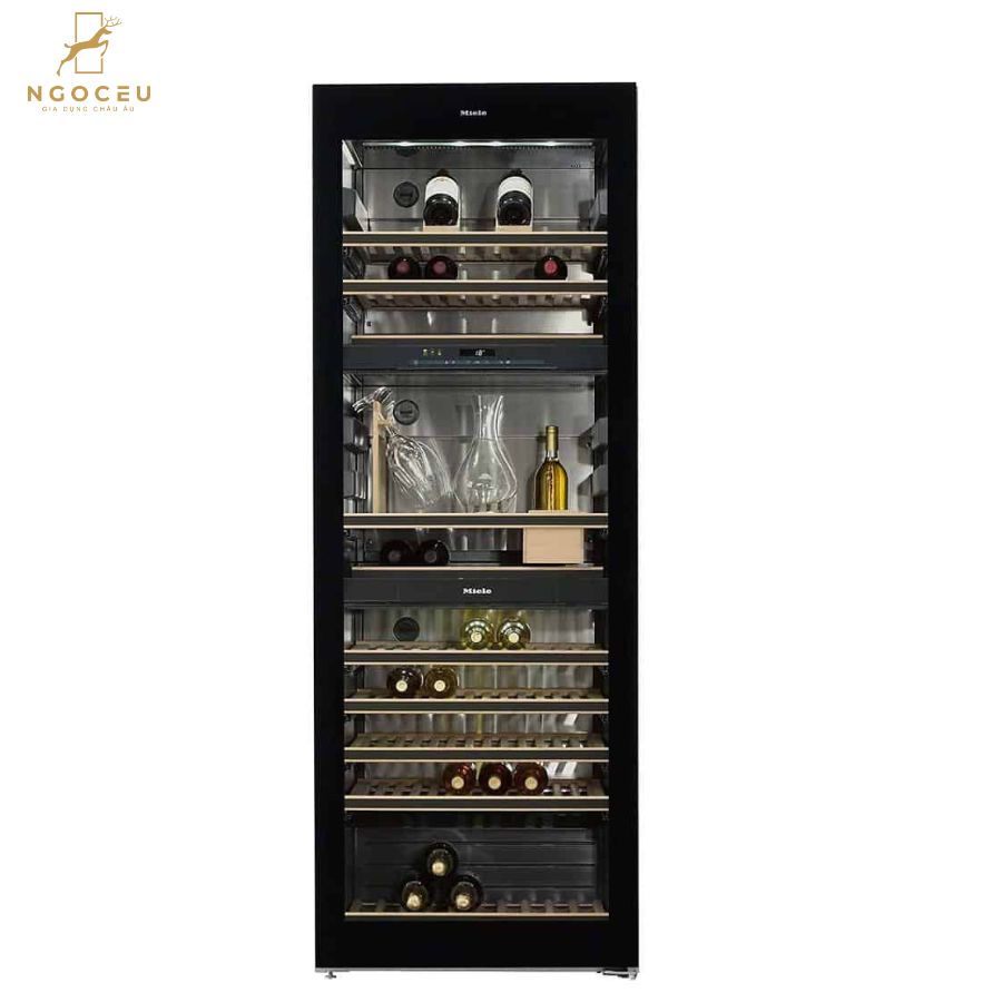 - Tủ Bảo Quản Rượu Vang Miele KWT 6834 SGS 178 Chai được trang bị tới ba vùng nhiệt độ có thể được điều khiển riêng biệt. Cho phép bảo quản tối đa ba loại rượu khác nhau như vang đỏ, vang trắng, sâm panh hoặc vang sủi bọt cùng một lúc và trong điều kiện nhiệt độ, hoặc độ ẩm hoàn hảo nhất.
