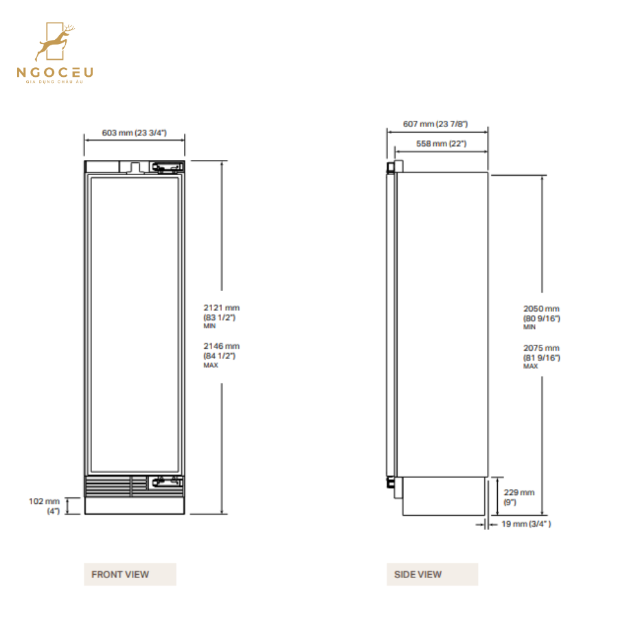 - Chiều cao tổng thể: 2,121 mm ~ 2,146 mm (83.5” ~ 84.4”)