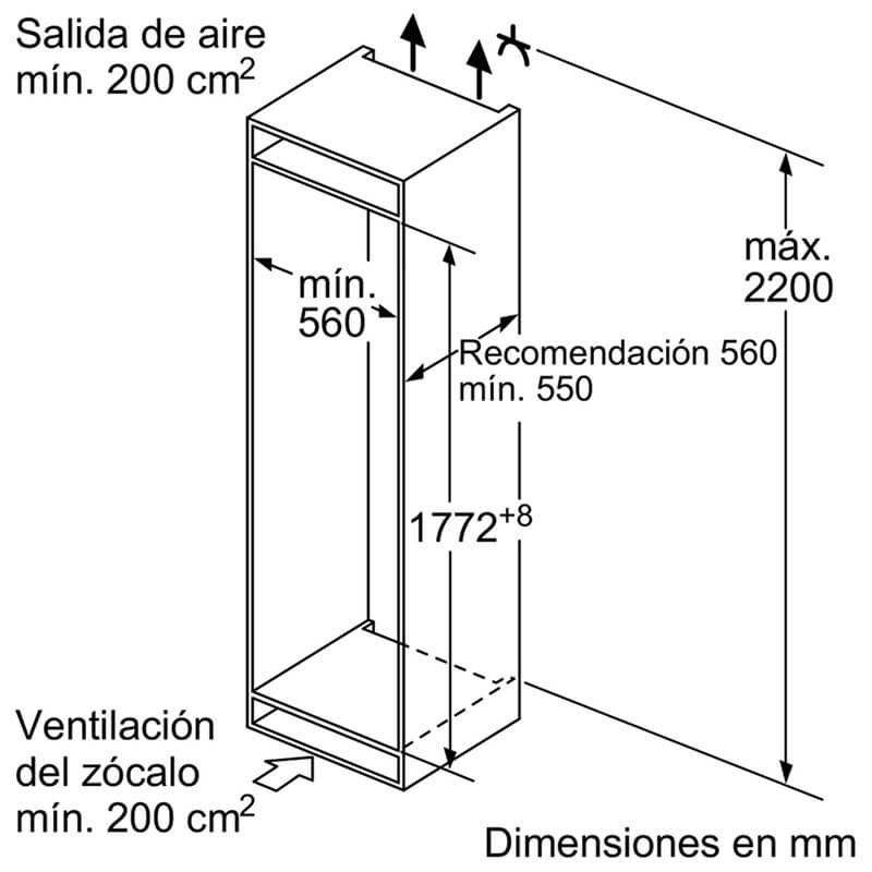 – Kích thước lắp đặt (chiều cao x chiều rộng x chiều sâu): 177,5 x 56 x 55 cm