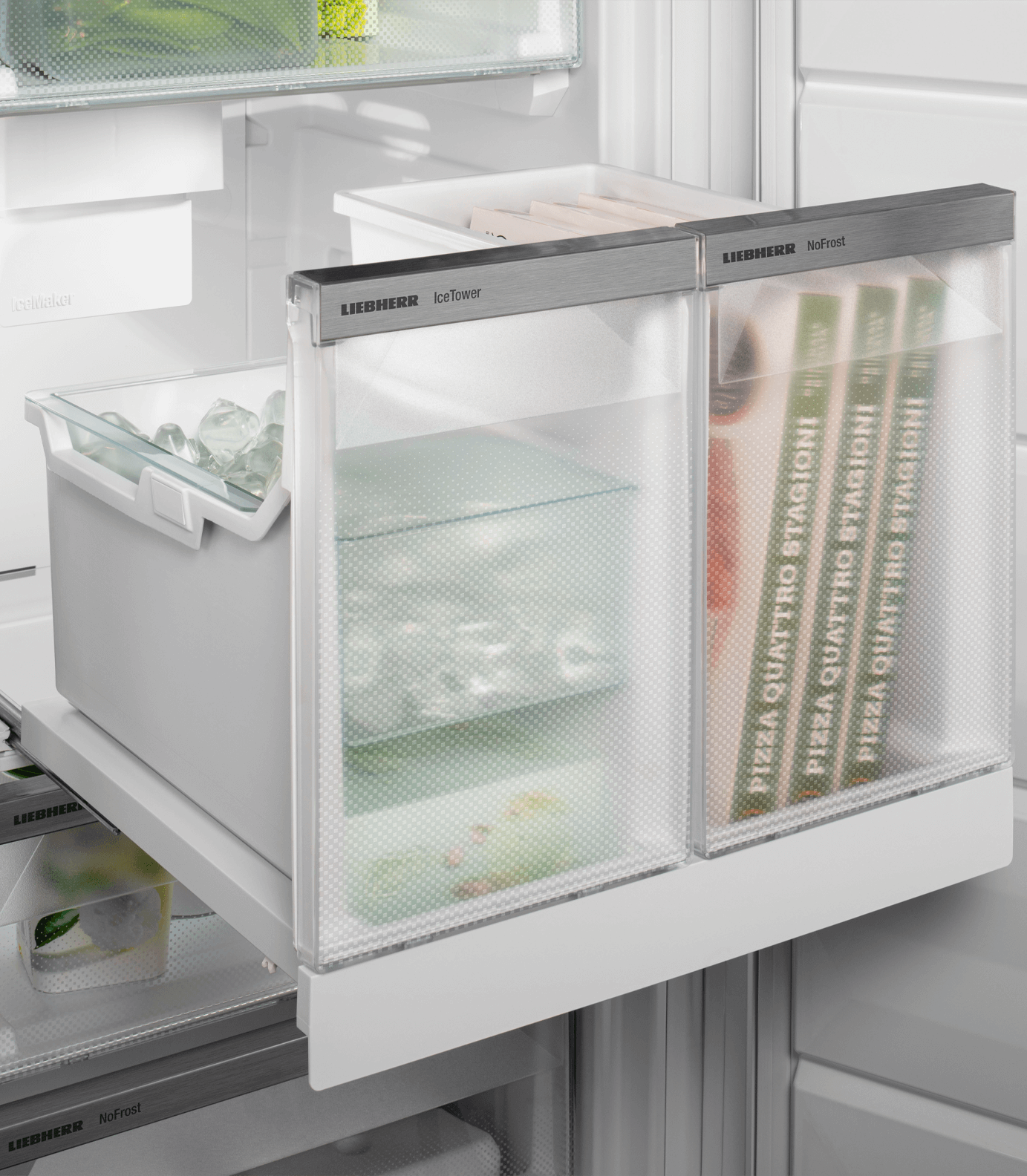 - Bạn sẽ không bao giờ hết đồ uống lạnh trong bữa tiệc của mình. IceTower, chứa 5,7 kg đá viên, đảm bảo điều đó. Muỗng lấy đá viên và khay kéo trên thanh ray dạng ống lồng cho phép lấy đá viên dễ dàng. Một khay chèn bổ sung có nghĩa là bạn cũng có thể chứa ít đá hơn và nhường chỗ cho thực phẩm đông lạnh bên dưới. Ngăn kéo liền kề cung cấp không gian lưu trữ cho hàng đông lạnh.