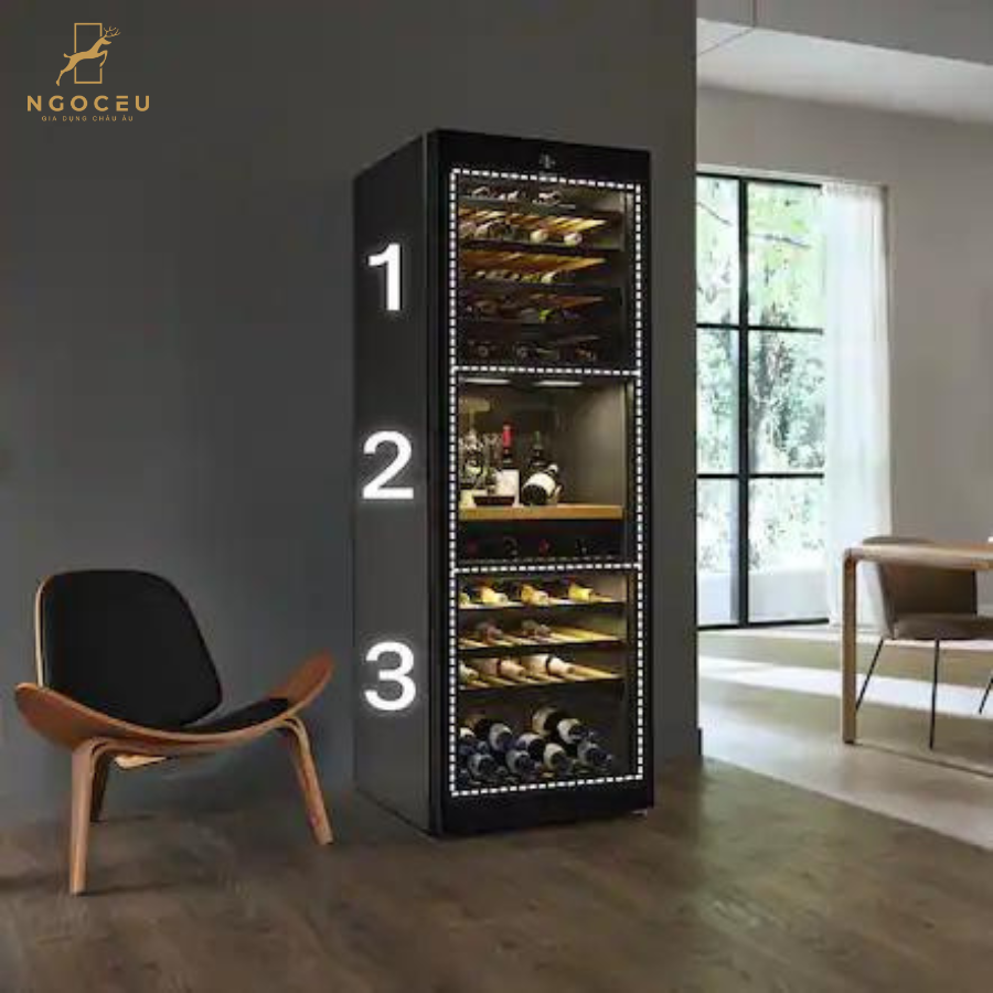 - Với tới ba vùng nhiệt độ có thể điều chỉnh riêng lẻ, bạn có thể cùng một lúc điều chỉnh nhiệt độ chính xác cho các loại rượu vang khác nhau cũng như rượu champagne hoặc sâm panh - hoàn toàn theo sở thích cá nhân hoặc điều kiện lưu trữ tối ưu. Hãy tận hưởng sự tự do, để phục vụ rượu của bạn ở nhiệt độ uống mong muốn.